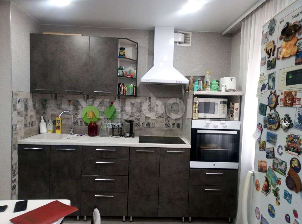 В квартире остается- кухонный гарнитур с встроенной бытовой техникой.