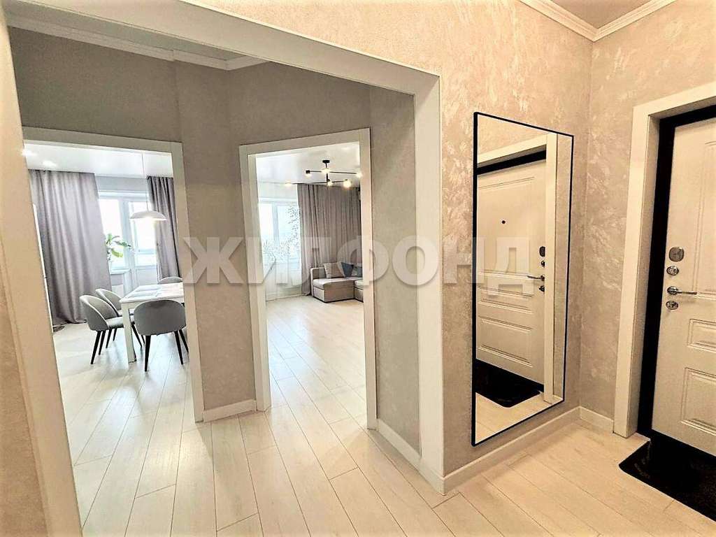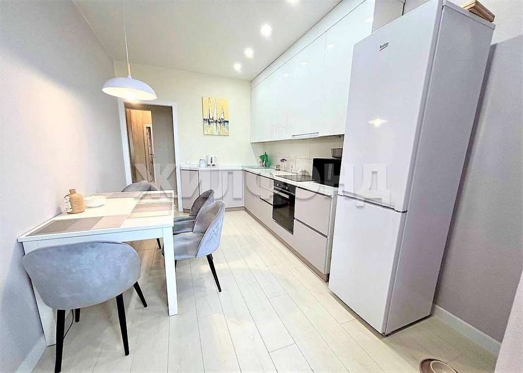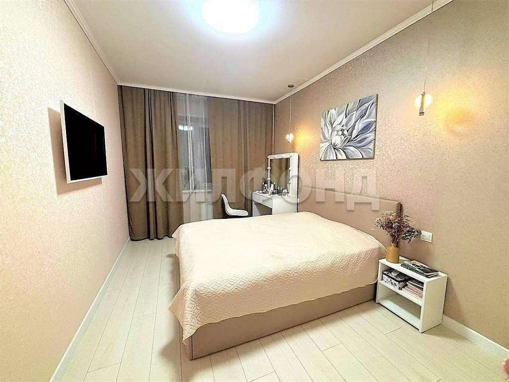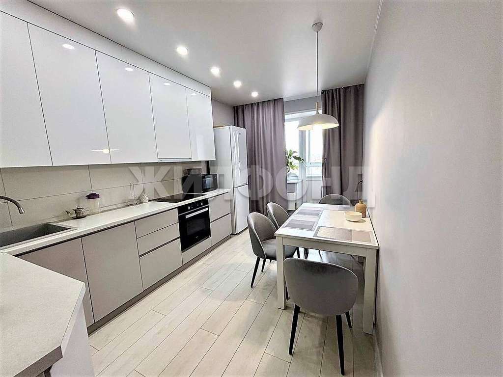 Квартира в идеальном состоянии. Выполнен качественный ремонт в светлых тонах. На полу-ламинат. В ванной и на балконе--керамогранит. Потолки натяжные, матовые, кроме спальни. Там потолок вытянут и покрашен. На стенах- обои( в коридоре и спальне- декоративные, в кухне и гостиной- под покраску) . Красивые двери. Балкон застеклён.