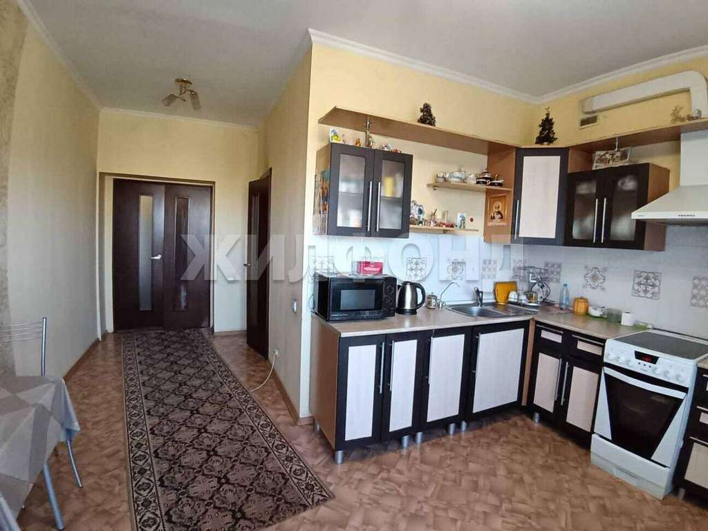 Установлен кухонный гарнитур, бытовая техника. Остаётся вся мебель и техника.