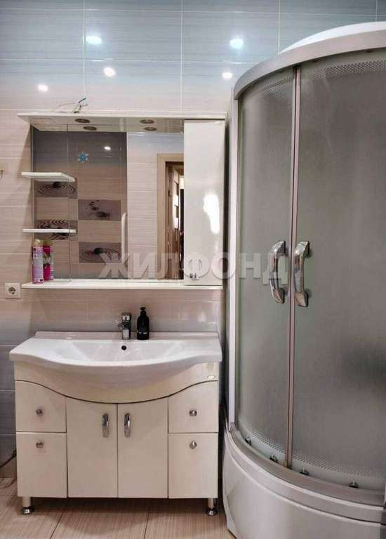 В зоне совмещённого санузла - регулируемые тёплые полы, установлена большая, комфортная ванная в виде джакузи, душевая кабина с сенсорным управлением, раковина с зеркалом и подсветкой.