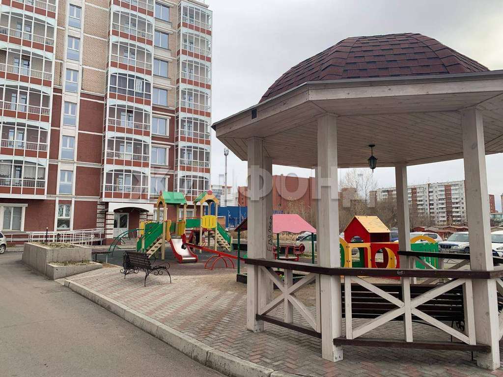 Во дворе находится детская площадка и большая открытая парковка для авто.