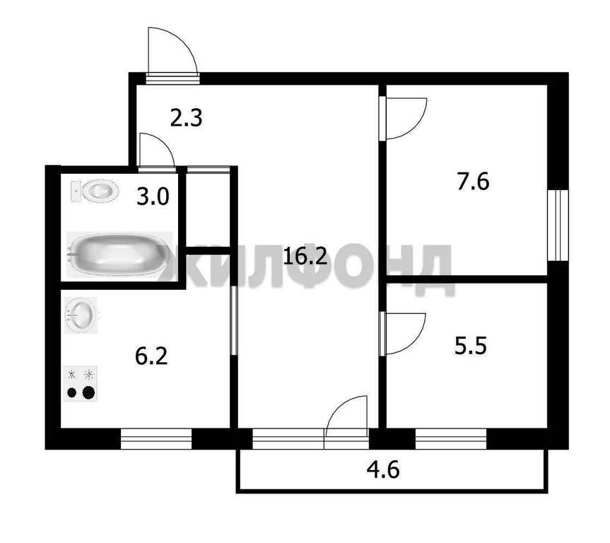 -Две небольшие спальни, гостиная, удобная кухня, санузел совмещенный, кладовая-гардероб. Окна выходят на две стороны.
