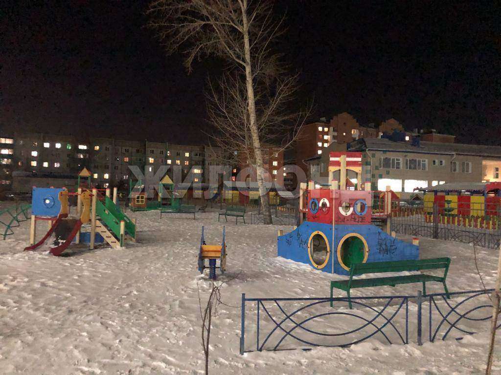 Во дворе несколько тематических детских площадок и детский сад Филиппок, открытая парковка автотранспорта.