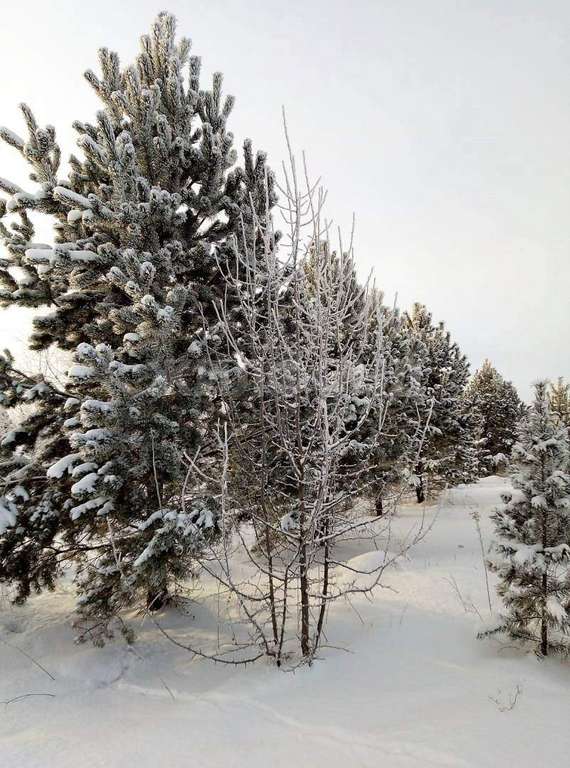рощей, где растут кедры, сосны, берёзы, рябины.