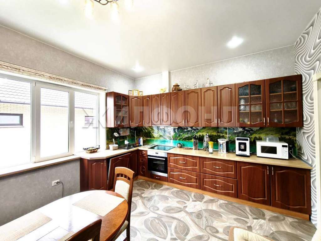 _В доме четыре комнаты, просторная кухня гостиная, шикарный зимний сад с выходом на террасу. Высота потолков 3 м. По всей площади дома - тёплый пол. Приточная вентиляция, твёрдотопливный котёл VSKZ, электрокотёл на 12 кВт ZОTА, подключено 30 кВт, скважина 16 м., септик 4 куб., бойлер на 180 литров.