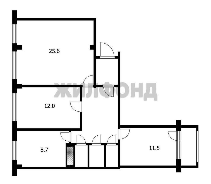 Общая площадь квартиры 73 кв м. состоит большой гостиной 25,6 кв. м., двух спальных комнат 12 кв. м. и 11,2 кв. м., кухни 8,7 кв. м. Просторный коридор 11 кв. м., раздельный санузел. Есть небольшая кладовая комната, которую можно использовать под гардероб.