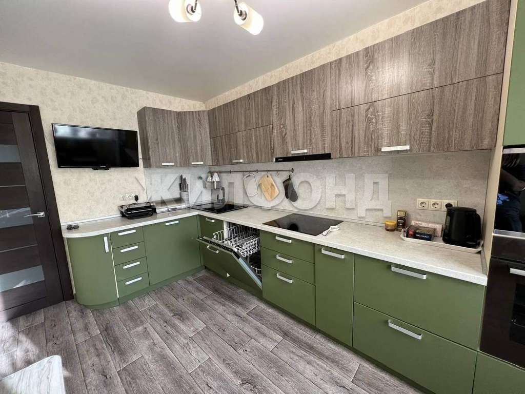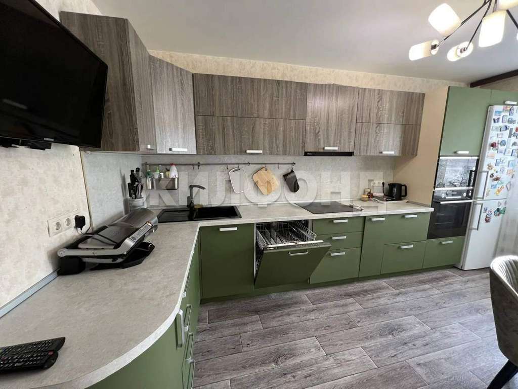 В Квартире остаётся встроенный кухонный гарнитур, с итальянской фурнитурой, гардеробная, стеллажи в кладовой, шкафы на балконе. Остальная мебель и техника по договоренности. В квартире установлены 2 кондиционера (в кухне и зале) , водонагреватель. На кухне заменена проводка, установлена качественная техника- встроеная духовка, микроволновка, посудомоечная машина, варочная панель и вытяжка.