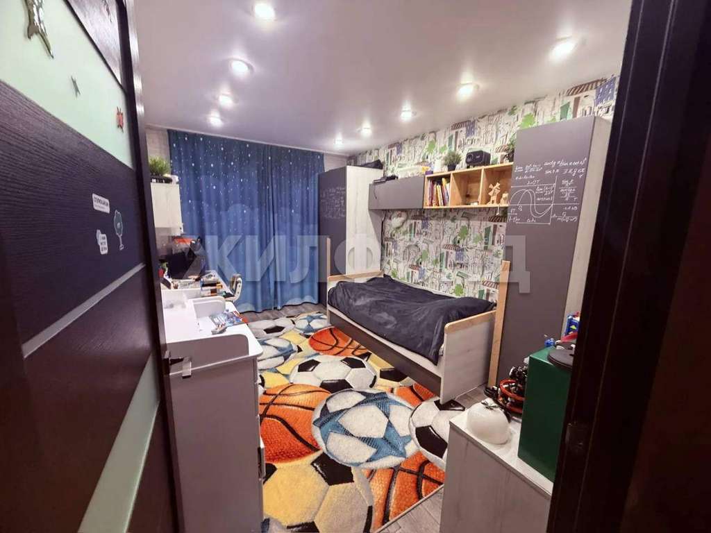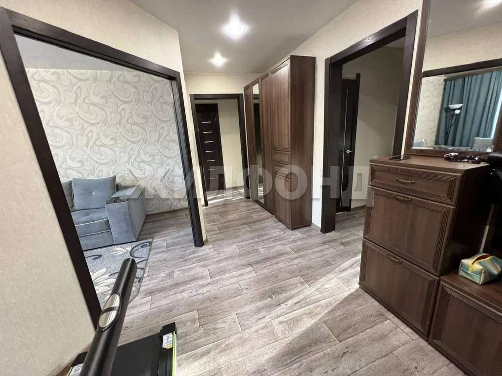 В квартире три спальни, большая кухня и просторный зал, широкая прихожая, что обеспечит комфортное проживание многодетной семьи. Также имеется отдельная гардеробная и кладовая. Практичное расположение окон на две стороны. По всему периметру натяжные потолки, на полу качественный линолеум, на стенах обои. Санузел раздельный в кафеле, установлена новая ванна с гидромассажем. Хорошая входная дверь с шумоизоляцией. Балкон отделан пластиковыми панелями, имеется два встроенных шкафа.
